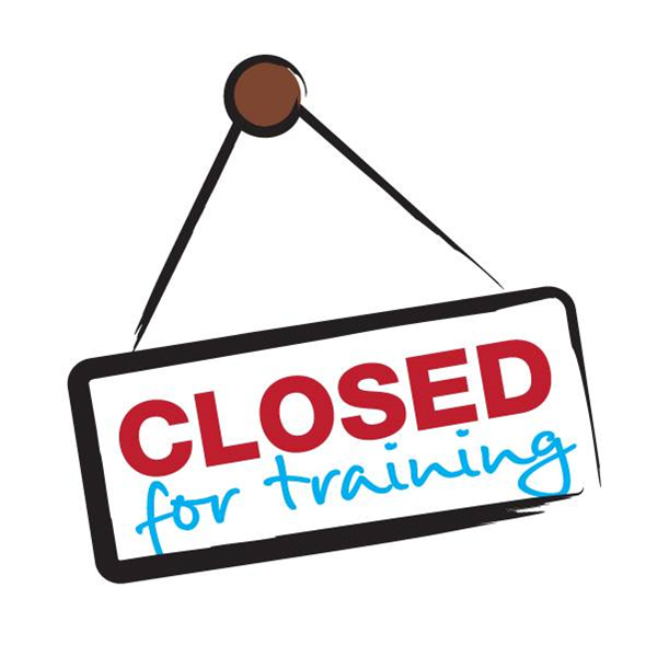 We are closed on the following dates for for staff training from 12:30 pm to 6:30 pm: